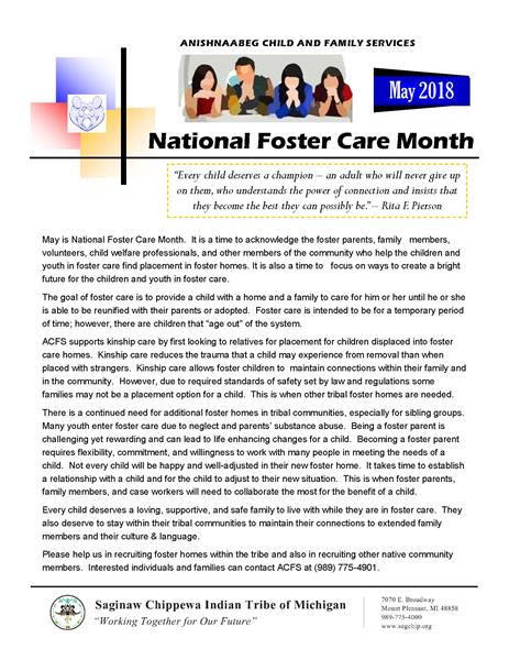 May Is National Foster Care Month Saginaw Chippewa Indian Tribe